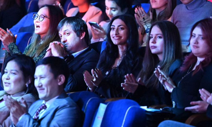 Перед началом мероприятия Касым-Жомарт Токаев и Ваагн Хачатурян осмотрели в фойе театра фотовыставку, посвященную 100-летнему юбилею великого армянского кинорежиссера и художника Сергея Параджанова.