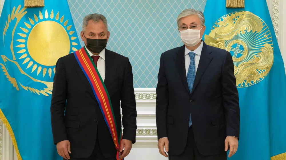 В завершение встречи Глава государства наградил Сергея Шойгу орденом "Достык" І степени за вклад в развитие военного и военно-технического сотрудничества с Казахстаном.
