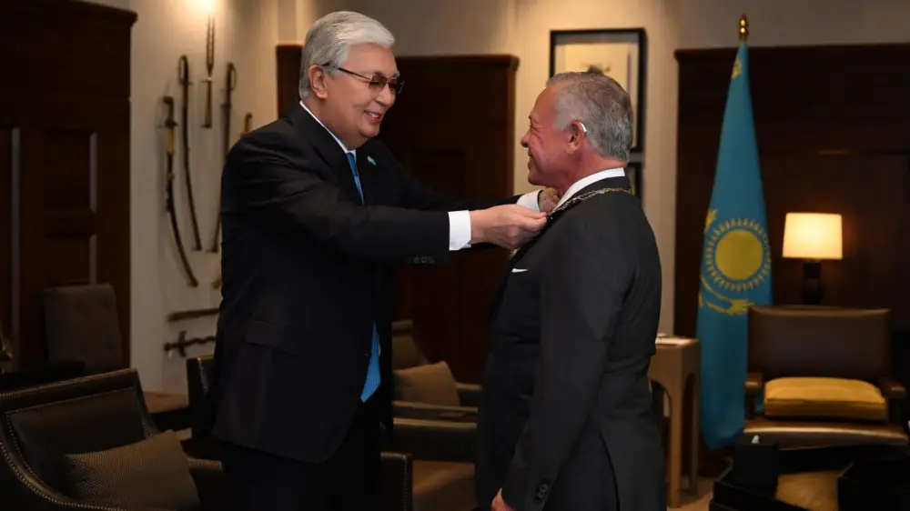 "Благодаря неизменной поддержке вашего величества мы углубили наше сотрудничество в областях, представляющих взаимный интерес, от экономического и инвестиционного взаимодействия до культурных и образовательных обменов. Будучи выдающимся государственным деятелем, защитником мира и образцом мудрости, вы продолжаете вдохновлять многих во всем мире. Народ Казахстана относится к вам с глубочайшим уважением. Мы гордимся тем, что Иордания является для нас не только партнером, но и настоящим другом. Под вашим мудрым руководством Иордания играет ключевую роль в укреплении региональной стабильности, межконфессионального диалога и продвижении гуманитарной деятельности. Эти ценности перекликаются с приверженностью Казахстана миру, толерантности и дипломатии. Во многом благодаря вашим неустанным усилиям и неизменной личной поддержке мы смотрим в будущее нашего сотрудничества с большим оптимизмом и новыми надеждами", – подчеркнул Президент, награждая главу Иордании.
