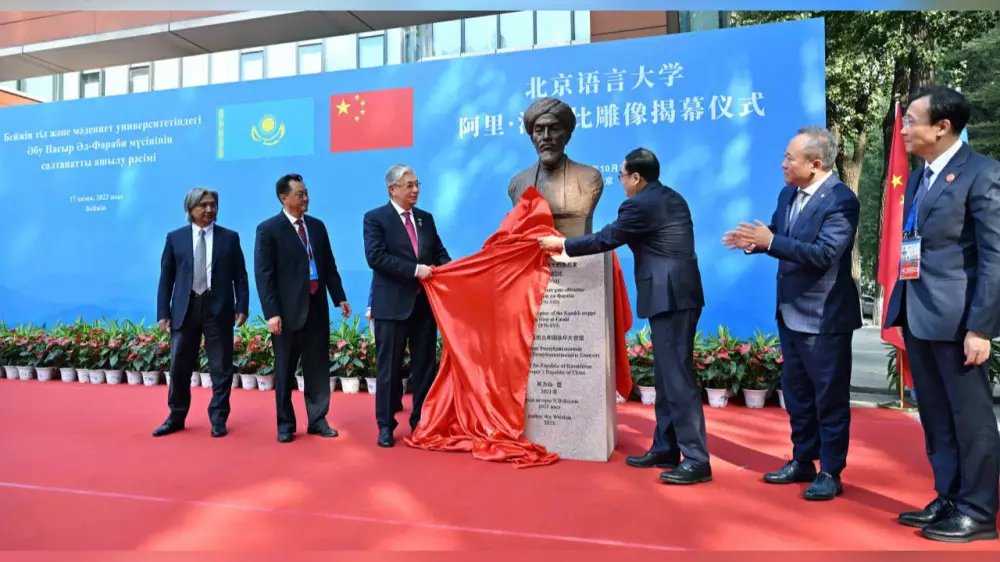 Президент Касым-Жомарт Токаев принял участие в торжественной церемонии открытия бюста средневекового философа и ученого Абу Насра аль-Фараби на территории Пекинского университета языка и культуры.