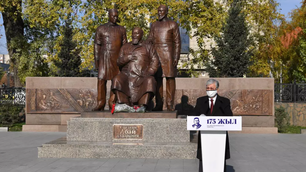 Рабочая поездка Президента Касым-Жомарта Токаева в город Семей началась с участия в церемонии открытия памятника "Ұлы ақын Абай ұлдарымен". Открытие композиции приурочено к 175-летию великого поэта и мыслителя Абая Кунанбаева. На памятнике Абай изображен со своими сыновьями Акылбаем и Турагулом.