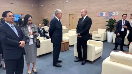 Напомним, в среду Токаев прилетел по приглашению Путина с рабочим визитом в Казань для участия в саммите. Как сообщалось, в рамках визита Президент Казахстана проведет ряд двусторонних встреч, а также выступит на пленарном заседании БРИКС в формате "аутрич"/"БРИКС+".