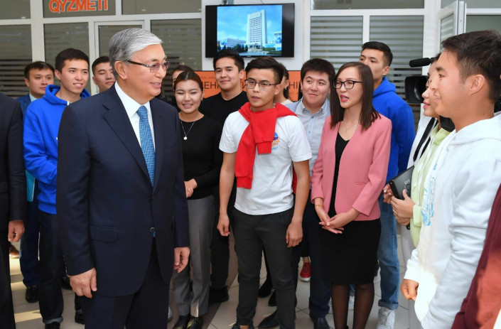 Также Касым-Жомарт Кемелевич осмотрел Центр обслуживания студентов "Керемет", расположенный на территории студенческого кампуса. Данный центр по принципу "одного окна" оказывает студентам и преподавателям свыше 500 различных услуг образовательного, социально-бытового, культурно-досугового назначения, включая первичную медико-санитарную помощь и диагностику здоровья. Здесь он встретился и пообщался со студенческой молодежью.