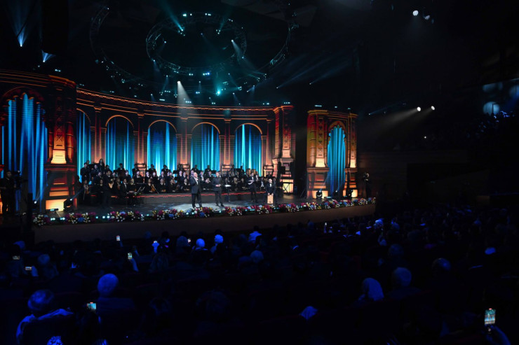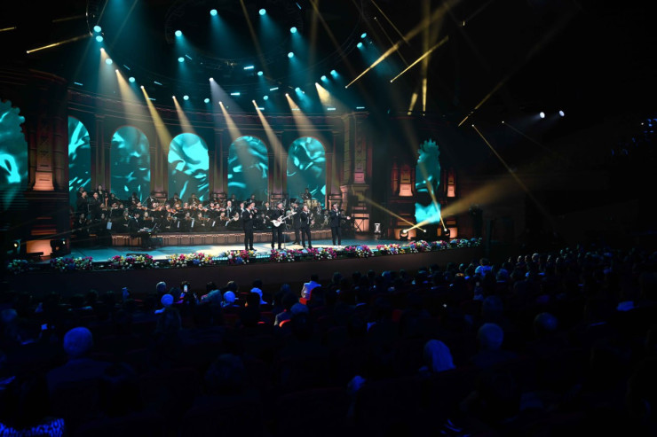 На сцене в исполнении ведущих артистов Казахстана и в сопровождении эстрадно-симфонического оркестра прозвучали песни поэта, завоевавшие всенародную любовь.