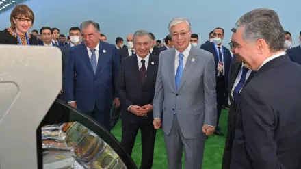 В рамках Консультативной встречи глав государств Центральной Азии Касым-Жомарт Токаев, Садыр Жапаров, Эмомали Рахмон, Гурбангулы Бердымухамедов и Шавкат Мирзиеев посетили выставку национальных товаров.