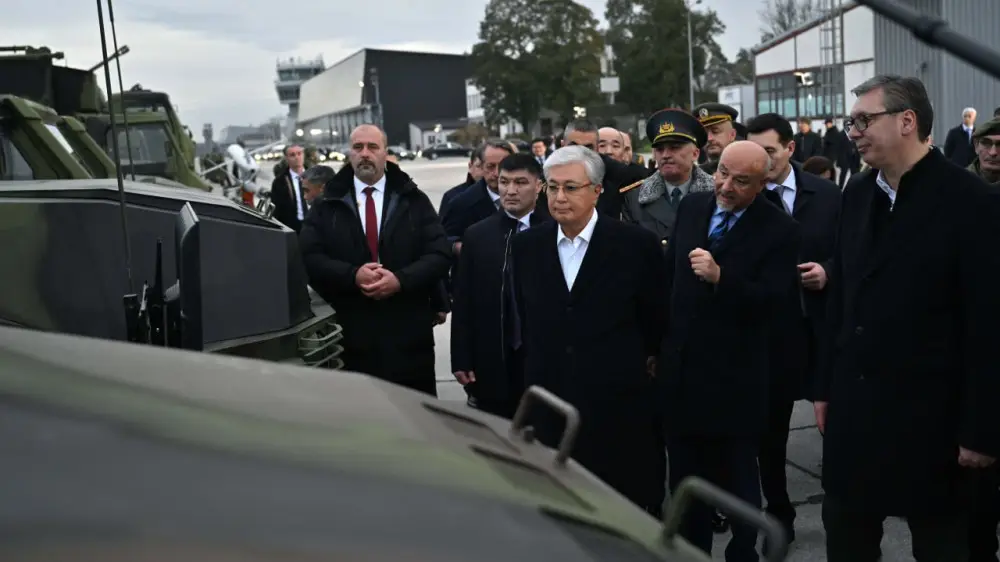 Президент Казахстана Касым-Жомарт Токаев осмотрел выставку предприятий военно-промышленного комплекса, развернутую на аэродроме "Батайница" под Белградом, передает Tengrinews.kz со ссылкой на пресс-службу Акорды.