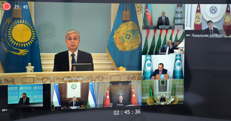 Касым-Жомарт Токаев принял участие в работе внеочередного заседания Совета сотрудничества тюркоязычных государств (ССТГ), проводившегося в формате видеоконференции и посвященного теме "Консолидация и сотрудничество по недопущению распространения пандемии СОVID-19".