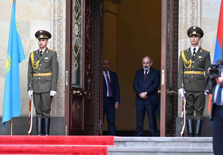 Начальник почетного караула отдал рапорт лидерам двух стран. После исполнения гимнов Казахстана и Армении Касым-Жомарт Токаев и Никол Пашинян представили друг другу членов официальных делегаций.