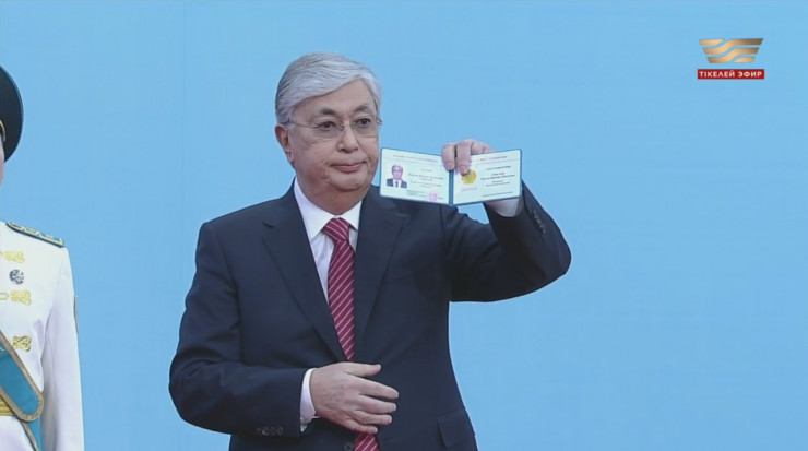 После произнесения клятвы в зале прозвучал гимн страны, а затем председатель Центральной избирательной комиссии вручил Касым-Жомарту Токаеву удостоверение Президента.