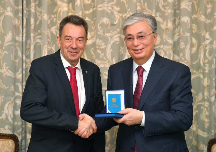 В завершение встречи Глава государства вручил Петеру Мауреру Орден "Достык" II степени за вклад в развитие сотрудничества между Казахстаном и МККК.