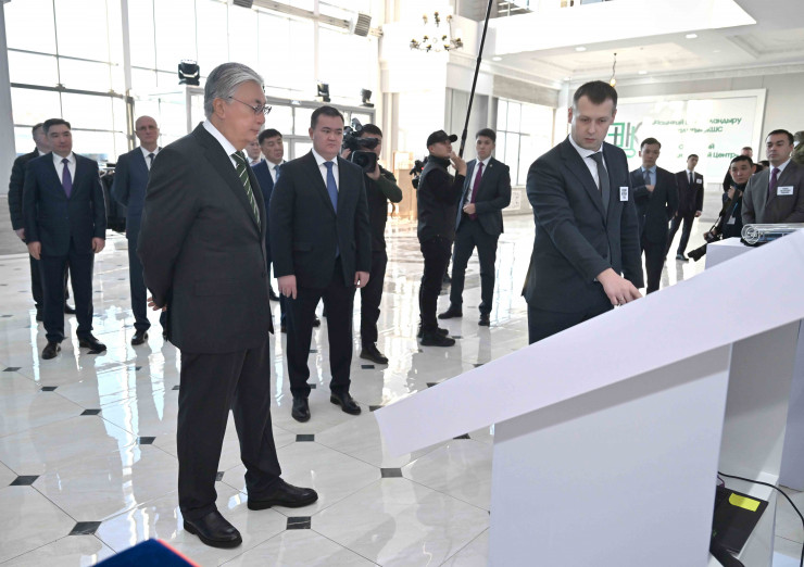 "Кроме того, Касым-Жомарт Токаев ознакомился с образцами военной одежды производства ТОО DUYQAZ, телекоммуникационным оборудованием ТОО Cuman Digital System Servis и продукцией других предприятий", - сообщает пресс-служба Главы государства.