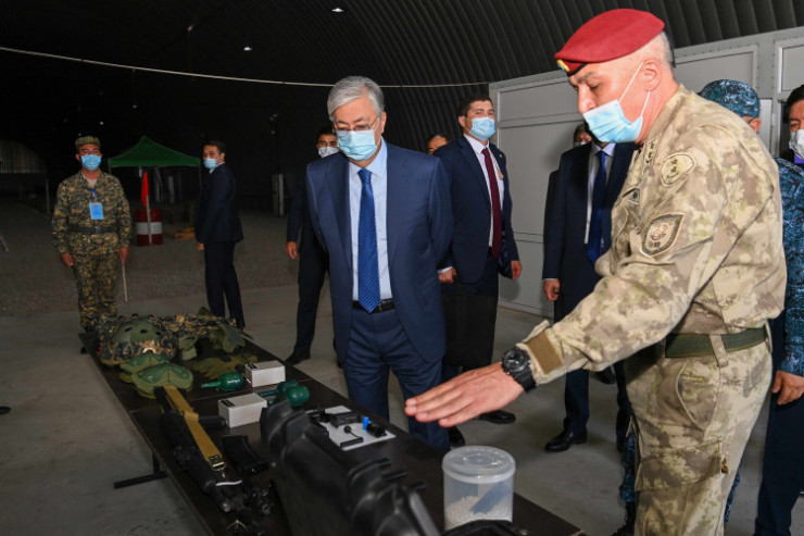Касым-Жомарт Токаев посетил оперативно-тактические учения "Кайсар-2021", которые состоялись на базе Центра боевой и методической подготовки подразделений Национальной гвардии МВД Республики Казахстан в Алматинской области.