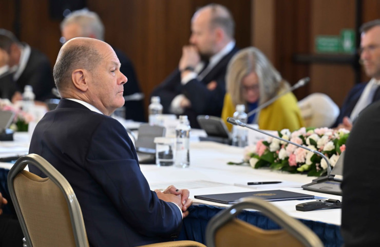 С приветственной речью к представителям бизнеса также обратился канцлер ФРГ Олаф Шольц.