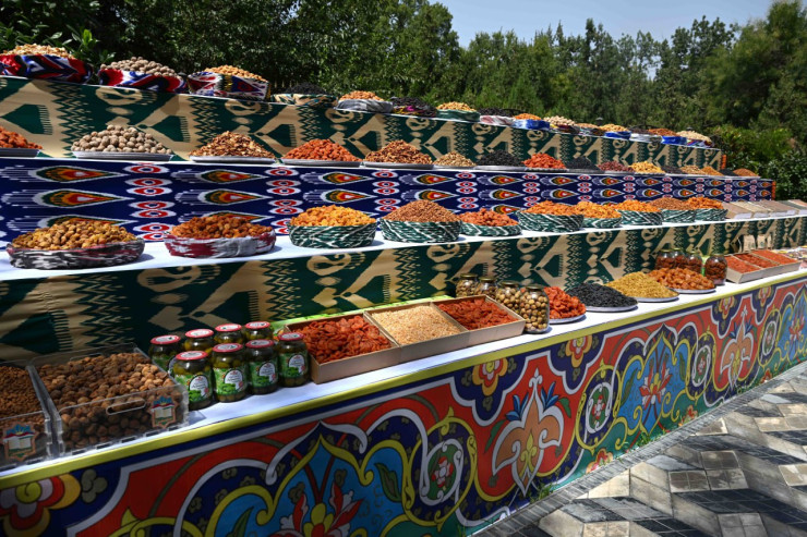 Главы государств также ознакомились с национальными блюдами, в том числе с несколькими разновидностями плова, приготовленного лучшими поварами, а также с хлебобулочными изделиями, включая различные виды лепешек и кульчи.