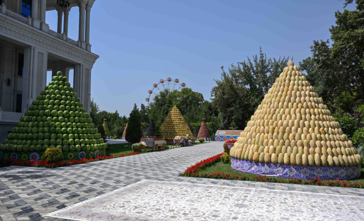 Касым-Жомарту Токаеву и Эмомали Рахмону на выставке была представлена сельскохозяйственная продукция: бахчевые, свежие фрукты и овощи.