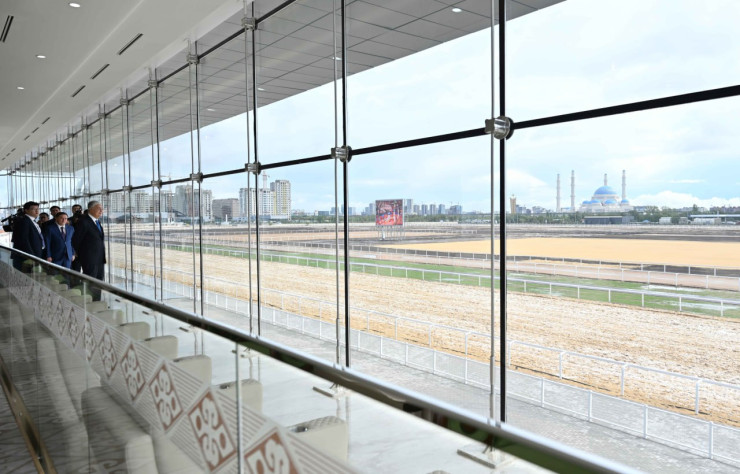 Глава государства посетил ипподром "Қазанат", на котором пройдут состязания по конному спорту, и площадку для соревнований по жамбы ату и теңге ілу.