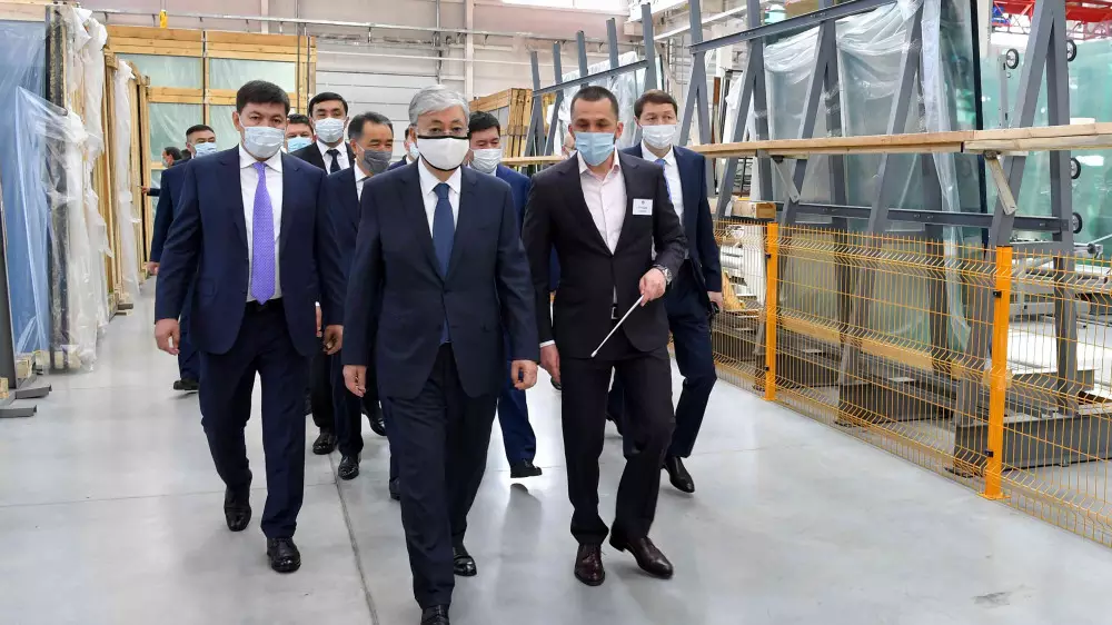 В рамках рабочей поездки в Алматы Токаев ознакомился с деятельностью завода энергоэффективных архитектурных фасадов, расположенного в Индустриальной зоне города.