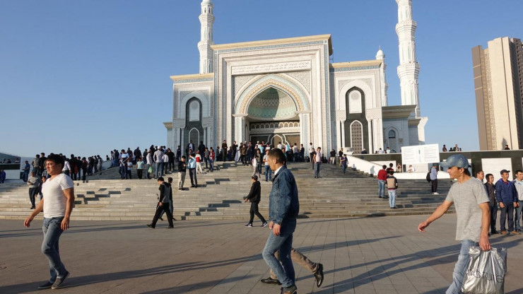 Необыкновенно красивая мечеть "Хазрет Султан", также называемая горожанами жемчужиной столицы, находится в центре города и удивительным образом гармонирует с расположенными вокруг постройками - Дворцом мира и согласия, Национальным музеем и жилыми домами, внося в современный ансамбль восточную нотку.