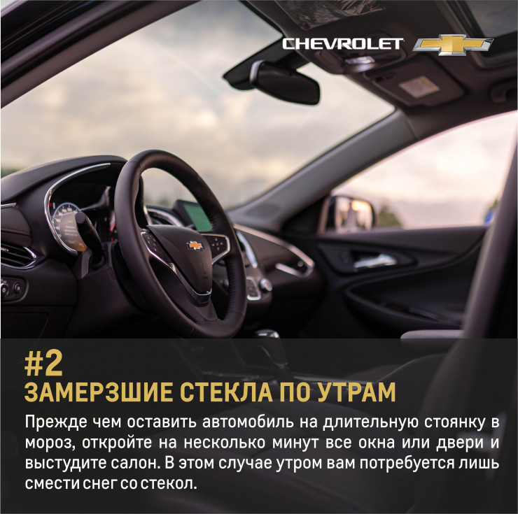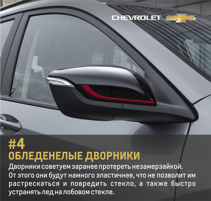 Конечно, если вы владелец современного автомобиля, который оснащен умной системой климат-контроля, то в этом плане вам будет значительно легче. К примеру, на таких автомобилях, как Chevrolet Tracker, Chevrolet Equinox, Chevrolet Trailblazer, Chevrolet Trаverse, Chevrolet Malibu и Chevrolet Tahoe, имеются функции обогрева боковых зеркал, а мощная печка быстро отогреет лобовое стекло и дворники.