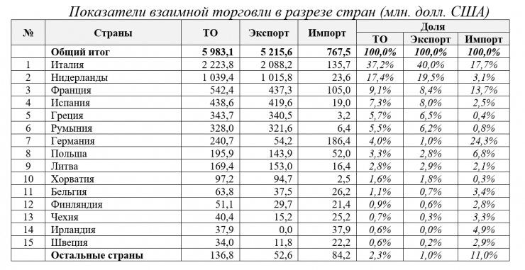 Сообщается, что рост экспорта в страны ЕС связан с увеличением поставок: