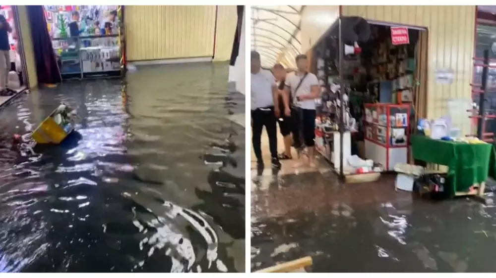 Торговый дом "Ялян" затопило после сильного дождя, прошедшего в пятницу 7 июля в Алматы. Видео залитых водой павильонов опубликовали в соцсетях местные торговцы, передает Tengrinews.kz.
