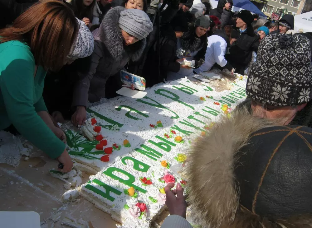 Отметим, что петропавловцы побили свой прошлогодний рекорд. На Наурыз-2012 длина торта составляла 2 метра.