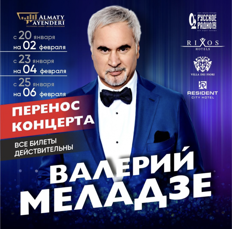 Акимат Алматы сообщил о переносе концертов Валерия Меладзе из-за семейных обстоятельств артиста, передает Tengrinews.kz.