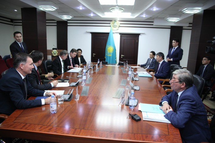 Вопросы реализации мясоперерабатывающего комплекса по докорму, убою, глубокой переработке, производству полуфабрикатов и готовой продукции из сырья мелкого рогатого скота обсудили инвесторы - компания BaumanGmbh & COKG с акимом области Амандыком Баталовым.