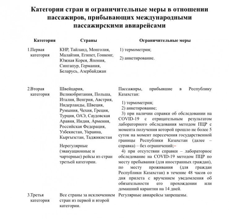 В новом постановлении главного санитарного врача Казахстана сообщается об изменении требований к прибывающим в страну из-за рубежа, передает корреспондент Tengrinews.kz.