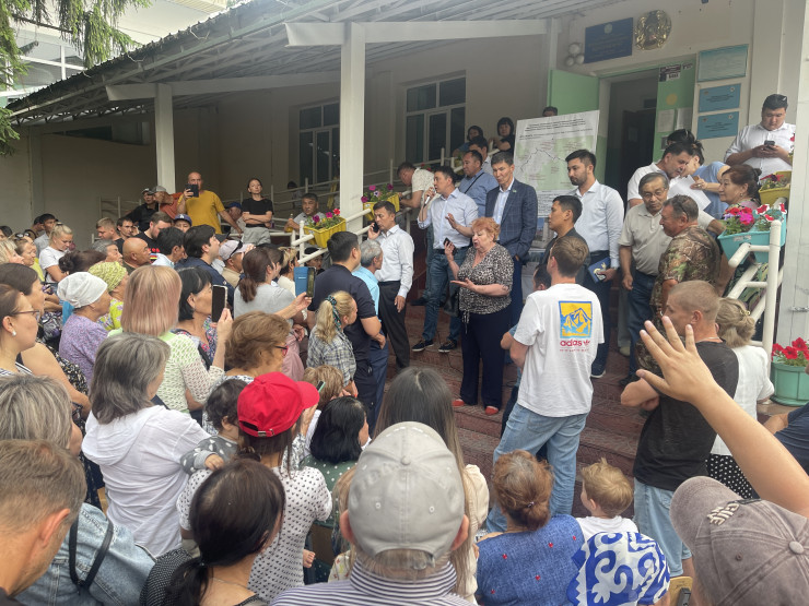 Терпение горожан лопнуло, и вечером 14 июня они вызвали на встречу акима Медеуского района. Глава района Еркебулан Оразалин прибыл на встречу с 20-минутным опозданием. Во время своего выступления аким отметил, что проблема с подачей воды решается, но не быстро.