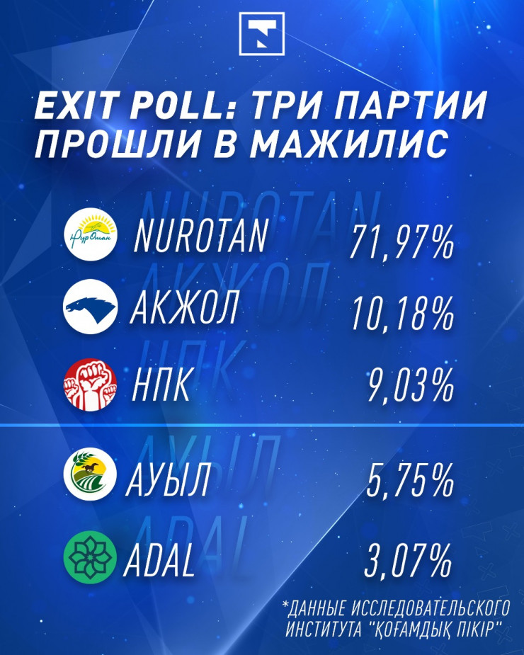 Три партии прошли в Мажилис - exit poll Exit poll исследовательского института "Қоғамдық пікір"
