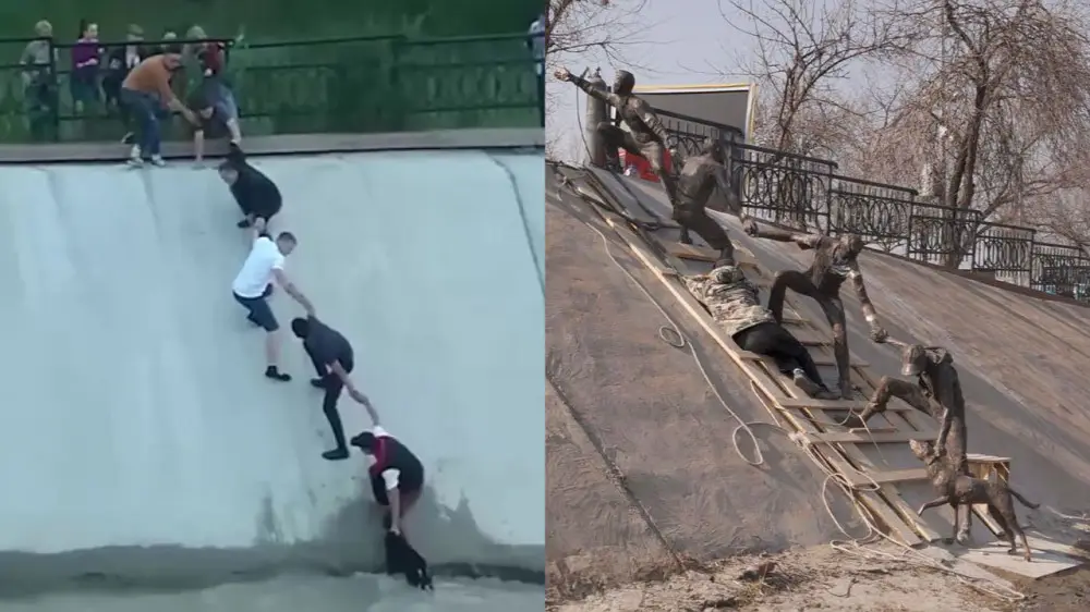 Напомним, в июне 2016 года жители Алматы провели операцию по спасению питомца, упавшего в водохранилище. Видео опубликовали на странице "Клуб добряков Алматы" в Instagram. Жители Алматы рисковали своим здоровьем, чтобы спасти питомца. На кадрах видно, как несколько человек, дружно схватившись за руки, вытянули собаку.