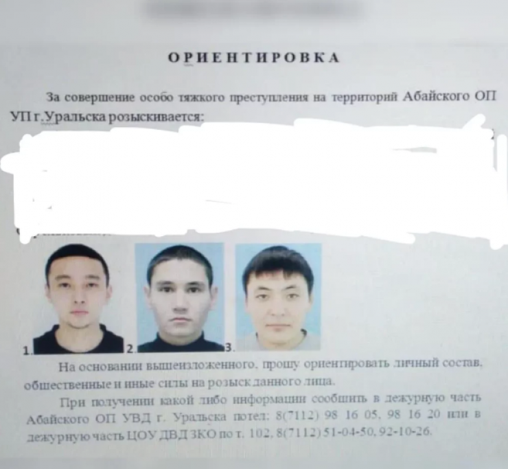 В мессенджере WhatsApp распространяется ориентировка Абайского отдела полиции города Уральска, согласно которой "за совершение особо тяжкого преступления" разыскиваются трое мужчин, передает Tengrinews.kz со ссылкой на "Мой Город".