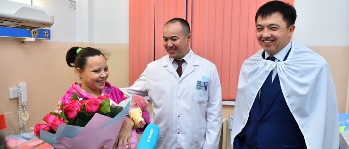В канун празднования главного национального праздника - Дня Независимости, в день выписки тройни - новорожденных семьи Балабековых, в родильном отделении Актюбинского медицинского центра маму и малышей посетили глава Актобе - аким Ильяс Испанов, заместитель акима Кульпаршин Айдарханова, сотрудники отдела РАГС Актобе.