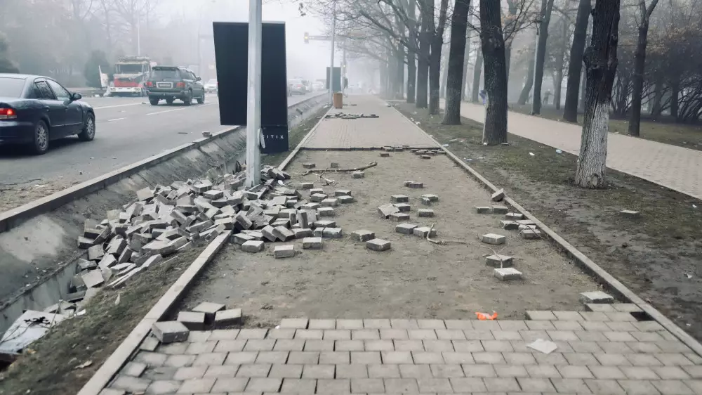По итогам обследования уличной сети выявлено, что в двух тысячах мест Алматы была разобрана брусчатка. Пострадали районы "Алматы Арены", площади Республики, проспектов Назарбаева, Достык, улицы Сатпаева. В настоящее время на устранение последствий выведены 80 рабочих, 30 единиц спецтехники.
