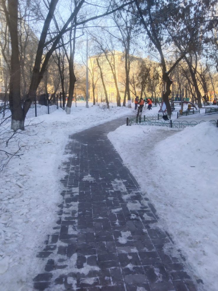 Также ведется отсыпка песко-соляной смеси во всех районах города – в общественных местах, внутриквартальных территориях, на тротуарах, остановочных павильонах и так далее.