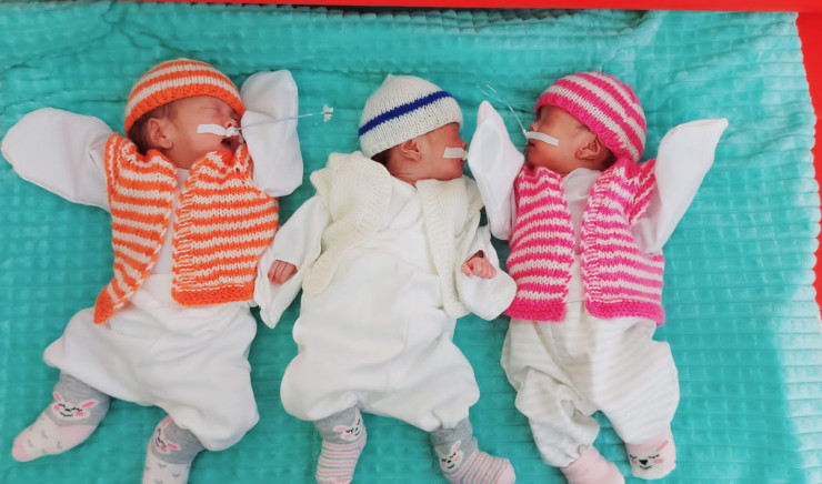 Девочки - Айлин, Аделя и Анель появились на свет в феврале, раньше положенного срока, на 28-й неделе. Их возвращения домой ждет счастливый отец. Он до сих пор не видел малышек, так как они с рождения находятся в перинатальном центре.