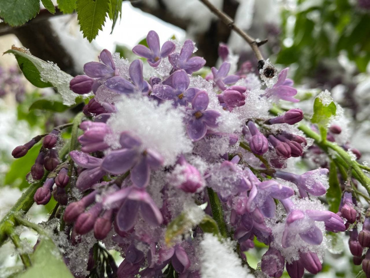 Белым пластом действительно покрылись хрупкие цветы деревьев - сирени, яблонь, вишни, смородины. Специалисты считают, что некоторые не выдержат такого холода.