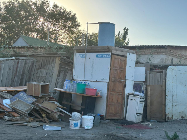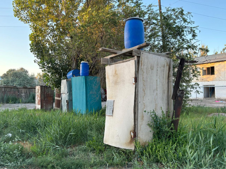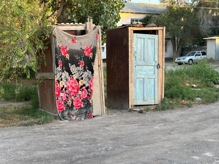 "Там кладку неправильно сделали, плиты уже проседают, и люди сами подпиливают двери, чтобы можно было туда зайти. Поэтому многие, у кого есть дети или пожилые люди, приобретают биотуалеты или просто ставят горшки. А вот этот туалет по улице Бокейхана, 49, был построен за 6 миллионов тенге, и люди до сих пор за него оплачивают деньги, хотя зайти в него опасно для жизни. Вытяжки там нет, запах ощущается даже на расстоянии. Поэтому местные жители ходят туда с осторожностью. Также есть проблемы с водой, централизованного водоснабжения у нас нет, набираем с колонки, которую сами же и установили. Напор там маленький, чтобы наполнить одну баклажку, уходит как минимум полтора часа, а еще бывает очередь за ней, поэтому очень бережно тратим воду. Посуду моем в умывальнике. У кого есть возможность, переезжают, остальные остаются здесь", - говорят местные жители.