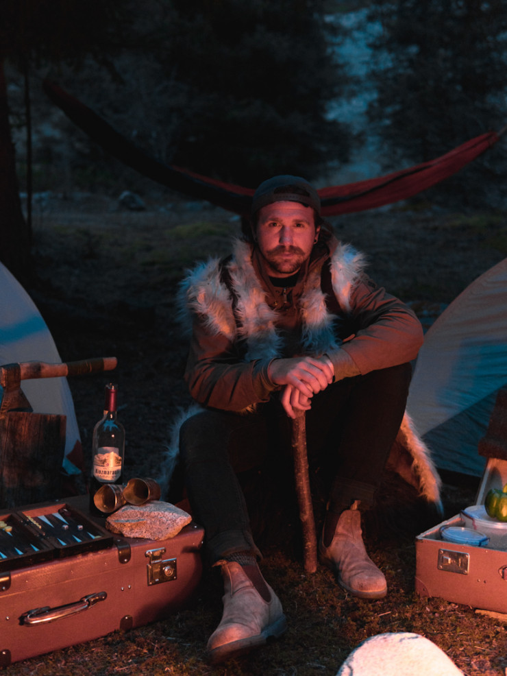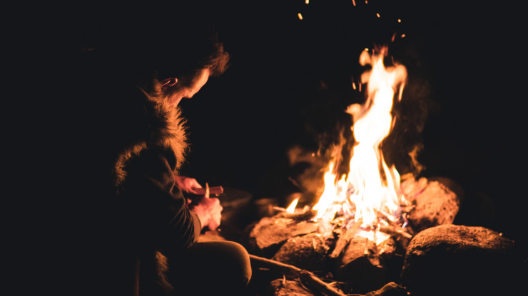 Где-то в горах Тянь-Шаня Натан отдыхает у разгоревшегося костра