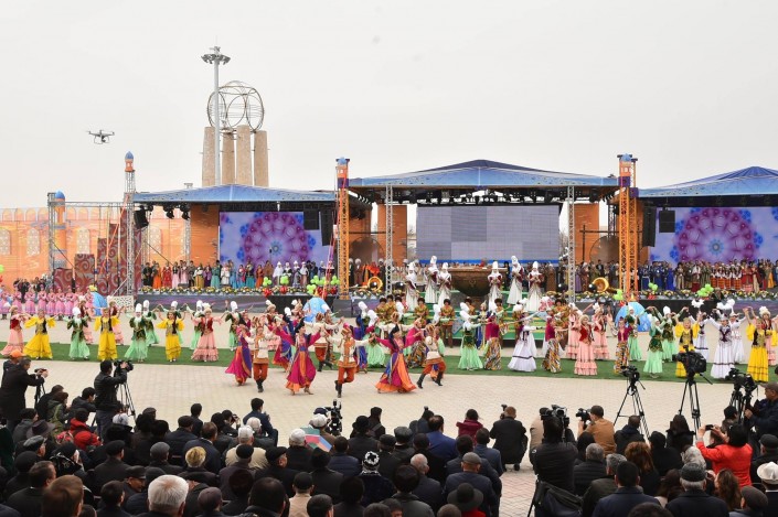 На сцене в это время развернулось театральное представление. Актеры были в образах Арыстан баба, Яссауи, аль-Фараби, Коркыт Ата, казахских ханов, а около 500 танцоров удивили всех масштабной хореографической постановкой. Кроме того, по площади прошел караван "Наурыз" из 18 верблюдов и 30 лошадей. Затем в присутствии тысяч человек малышу из Туркестана провели обряд тусаукесу. Путы перерезали аким ЮКО Жансеит Туймебаев и министр культуры и спорта Арыстанбек Мухамедиулы.