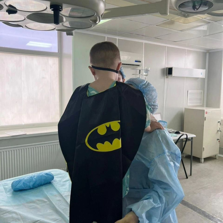 Ребенку перед операцией говорят: "Ты настоящий супергерой" и надевают на него плащ героя любимого детьми мультфильма. И далее в операционную он идет, крепко держась за руку мамы.