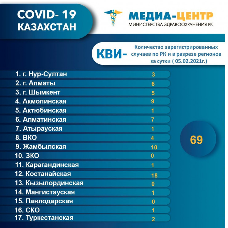 На 6 февраля 2021 года в Казахстане подтверждено 195 112 случая, из них:
