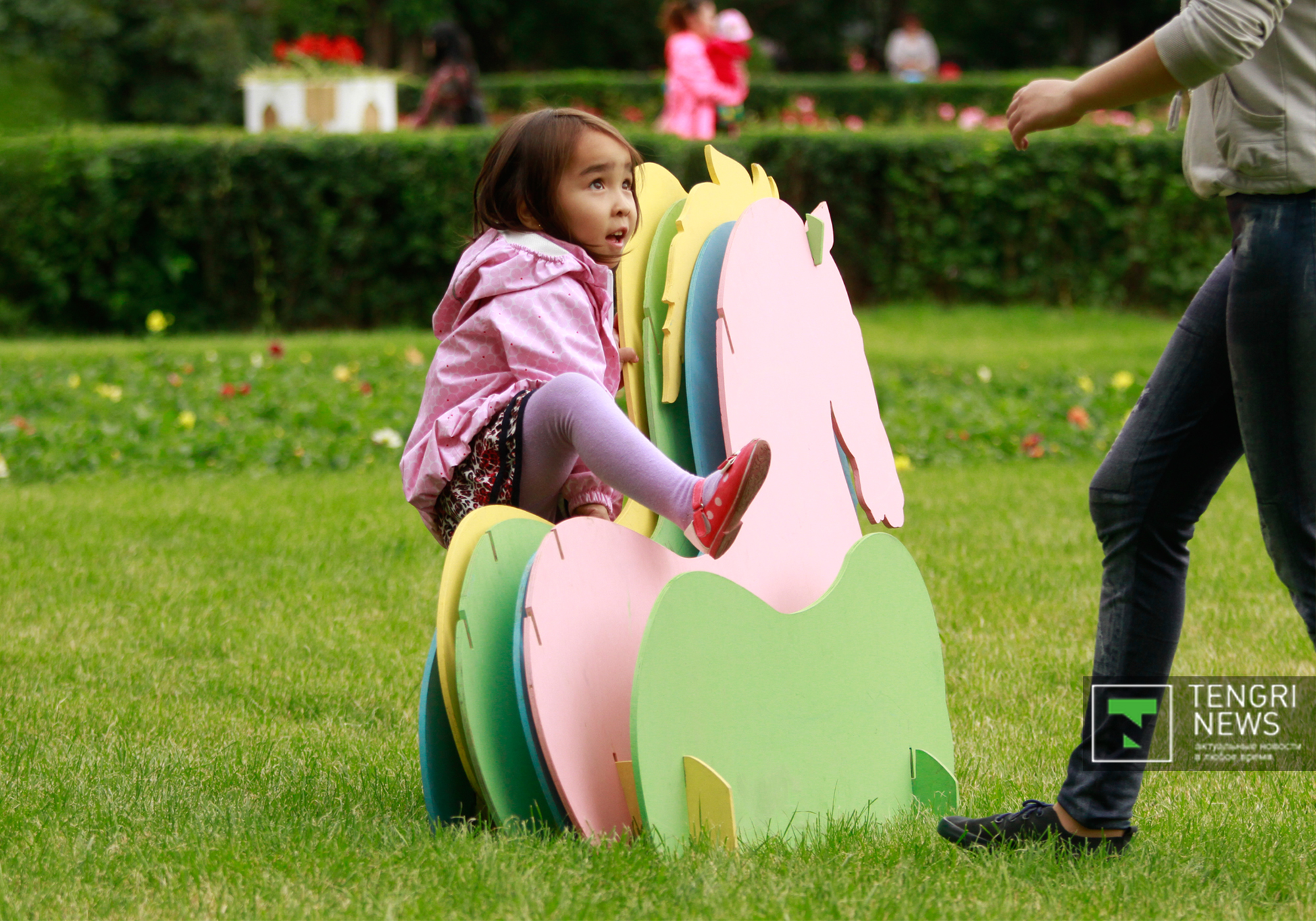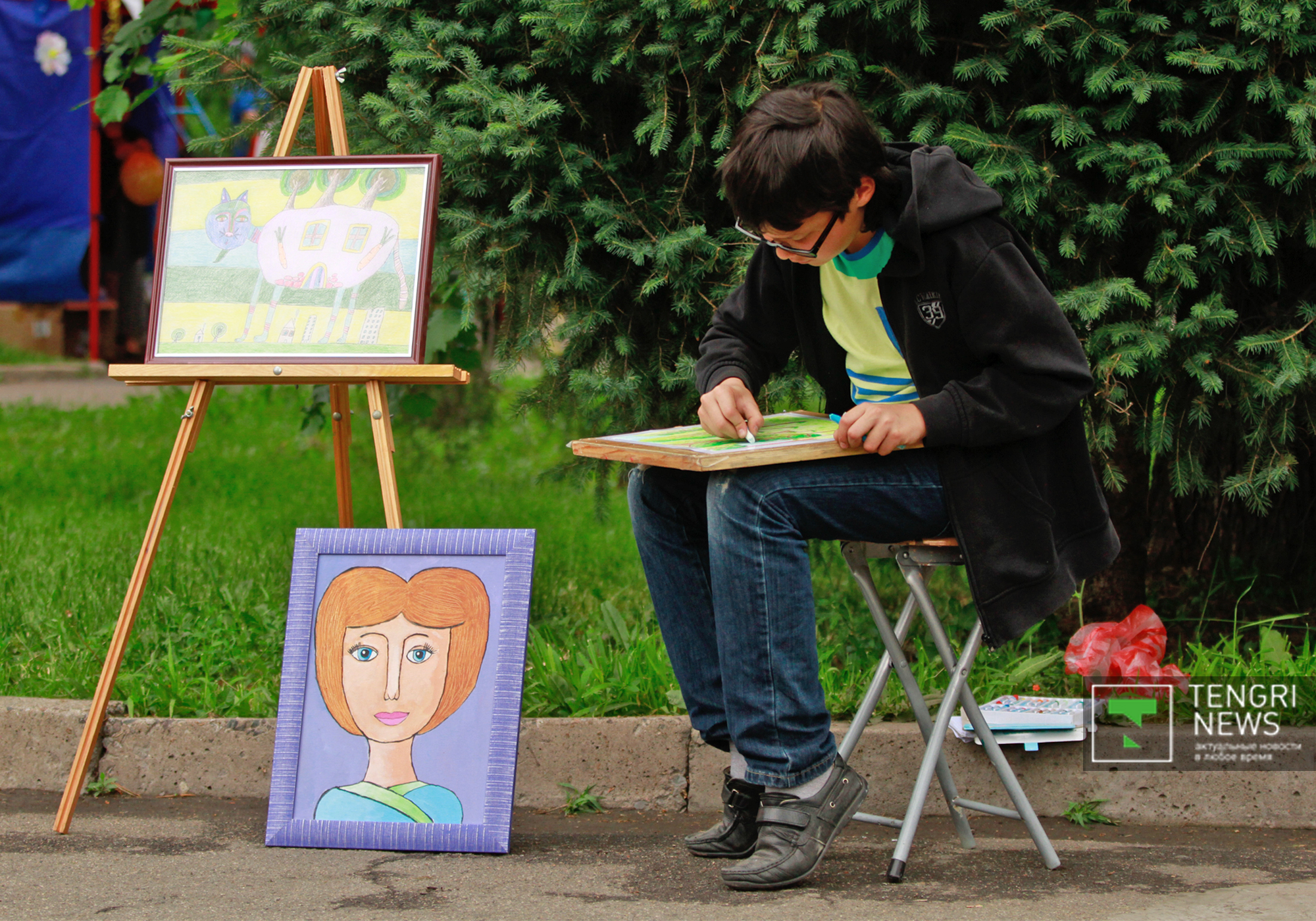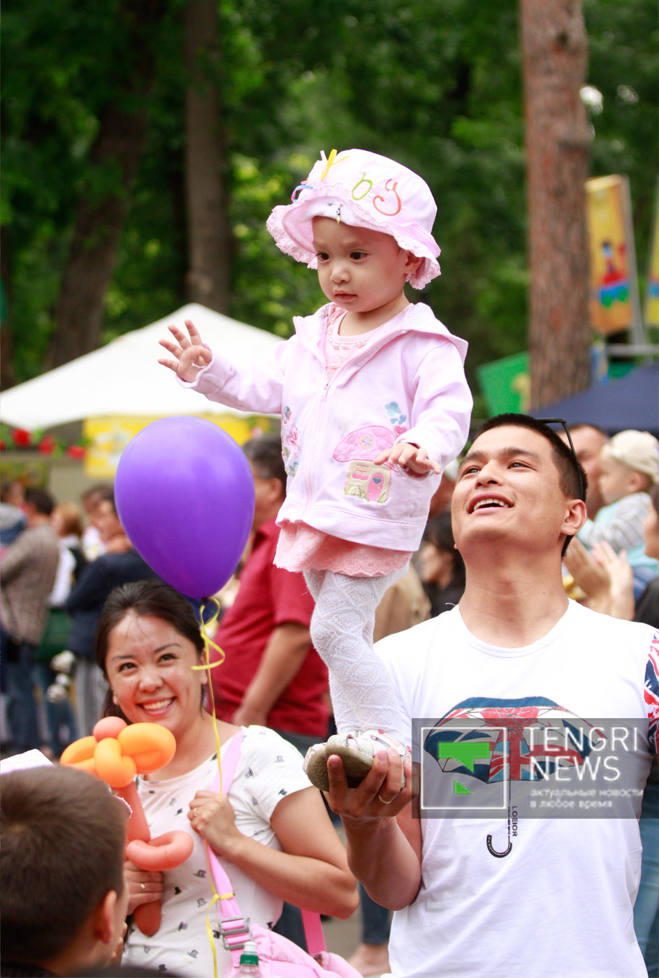 На концерте, который проходил у входа в Центральный парк, выступила певица Макпал Исабекова и юные артисты. Множество зрителей собрал и конкурс "Бозторғай" на сцене Летней эстрады. Одна из посетительниц тоже решила показать свой талант. Двухлетняя девочка по имени Мадина умеет артистично стоять на папиных руках. Ее отец Мадияр Аппазов отметил, что в его семье нет артистов или музыкантов, тем не менее родители будут развивать таланты дочери. "Мы ее не учили, она сама проявила свой талант. На руках стоит с первого года. Думаем отдать дочку на танцы", - сказал отец девочки.