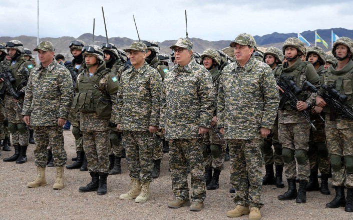 Президент Казахстана посетил командный пункт, осмотрел образцы военной техники и вооружения, объекты инфраструктуры, в частности, модульный мобильный госпиталь, полевой механизированный хлебозавод, продовольственный склад, пункт управления беспилотными летательными аппаратами.