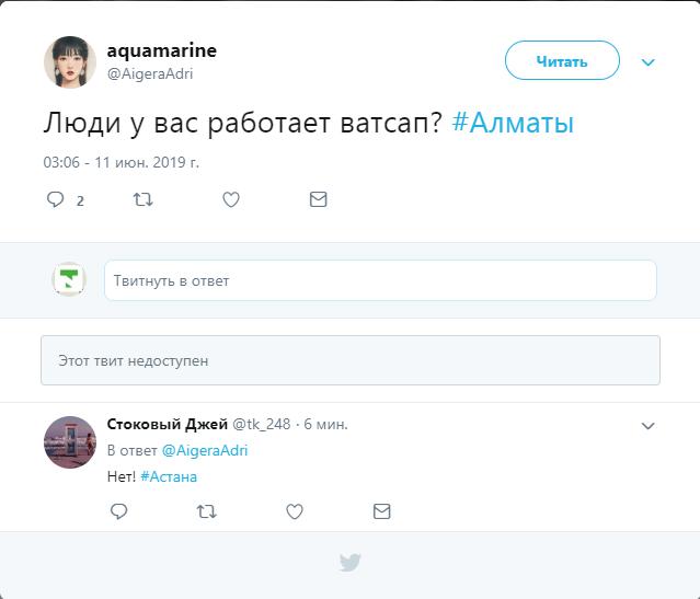 Казахстанцы пожаловались на проблемы с доступом к социальным сетям. В городах Нур-Султан и Алматы у некоторых пользователей не работает мессенджер WhatsApp, передает корреспондент Tengrinews.kz.