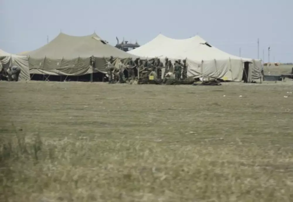 Между двумя поселками разбит военный лагерь. Здесь расположились спецназ МВД и войсковые подразделения. Близко подойти не получается. Люди в форме неприветливы, оно и понятно, погибли их сослуживцы. Есть ли потери с той стороны, неизвестно.