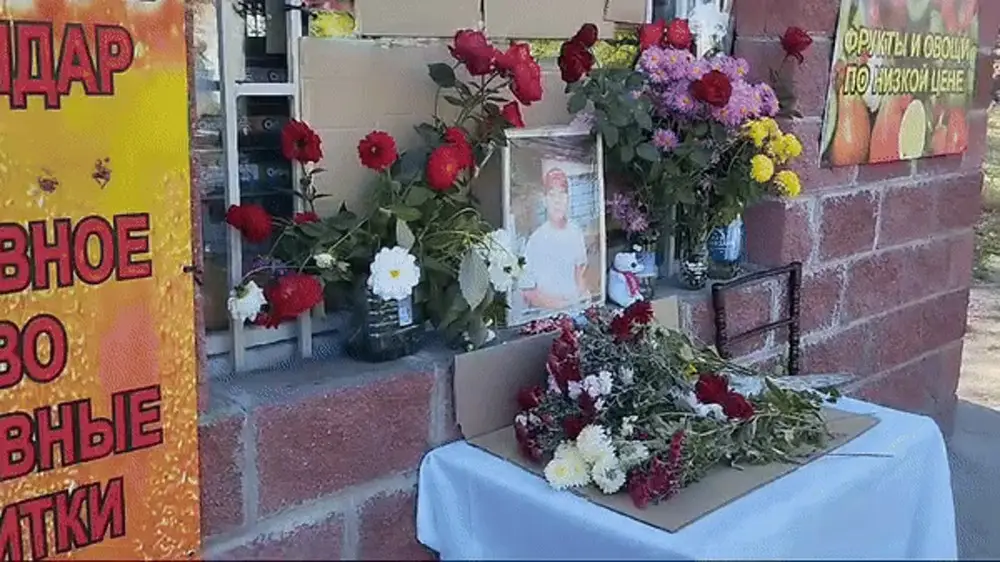На входе в магазин сооружен импровизированный мемориал с фотографией Шерзата, где лежат цветы. Сам магазин сейчас закрыт.