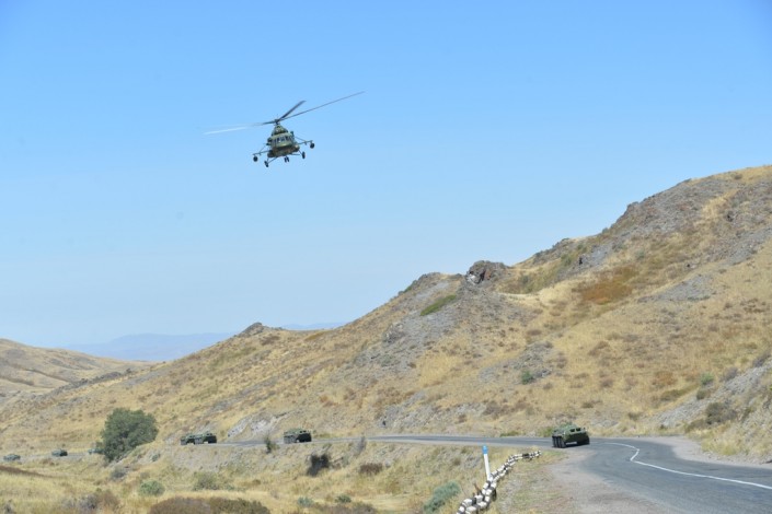 В восточном, юго-восточном, южном и западном регионах Казахстана продолжаются оперативно-стратегические учения "Каратау-2017", в которых задействованы около десяти тысяч военнослужащих, свыше полутора тысяч единиц боевой техники, более 40 самолетов и вертолетов, а также корабли Военно-морских сил.
