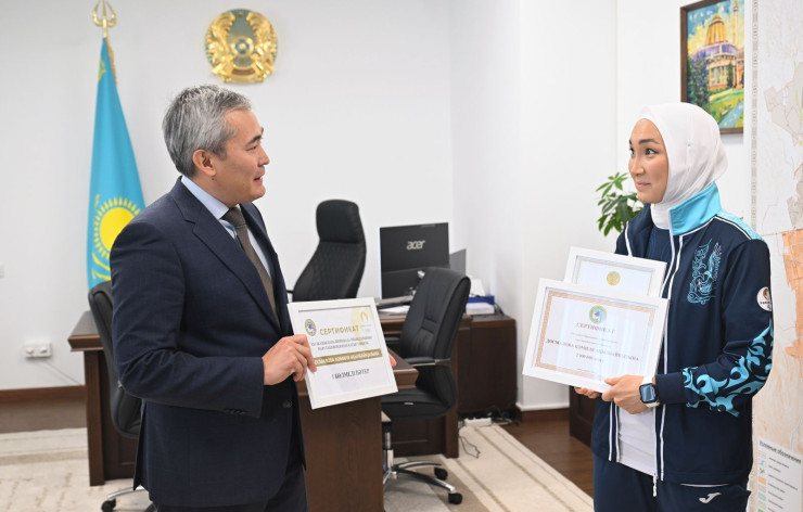 В ходе встречи Бейбут Шаханов передал Камиле Досмаловой и ее тренеру благодарственные письма от имени премьер-министра Олжаса Бектенова.